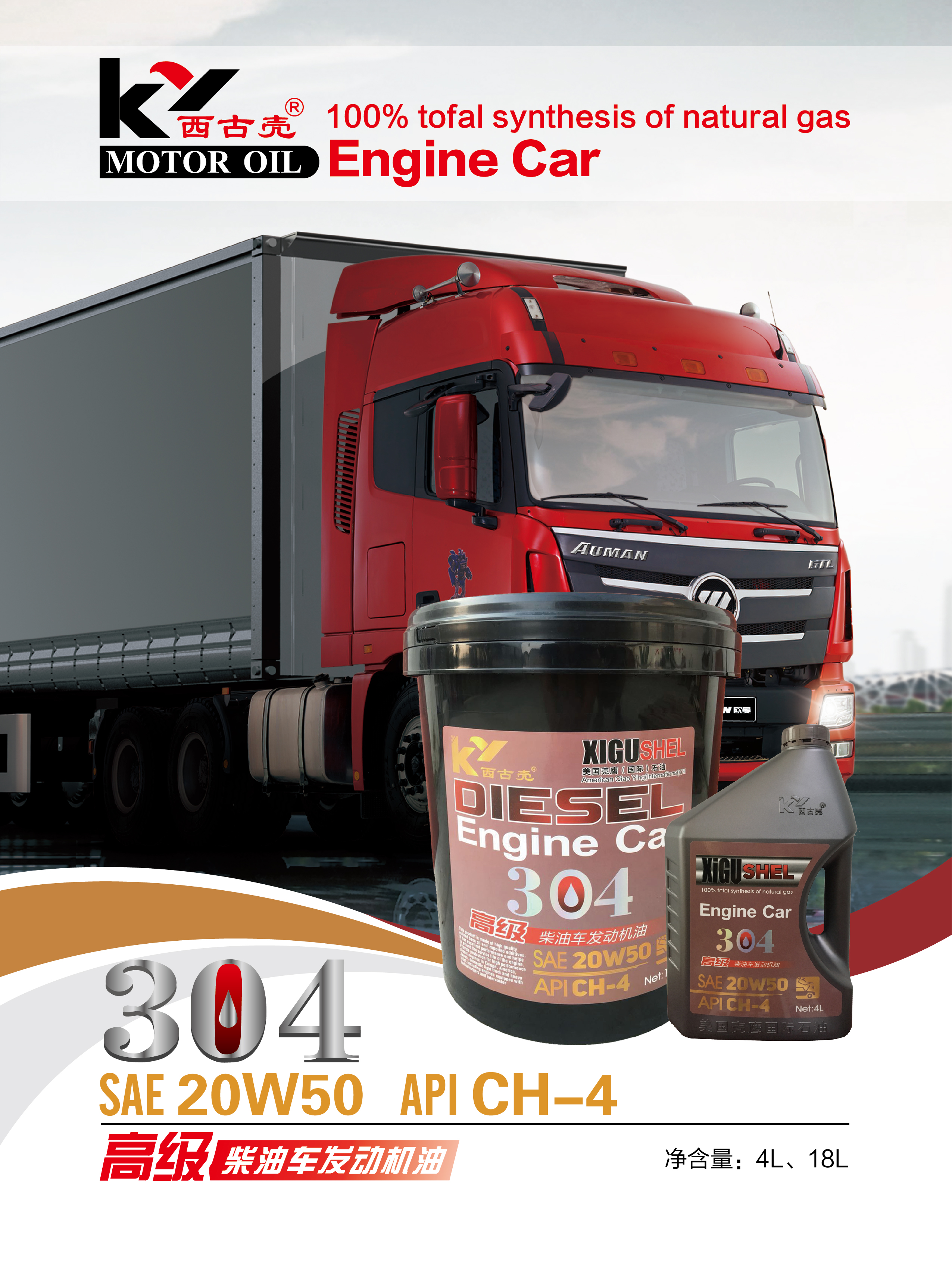产品名称: 壳鹰-西古壳 高级柴油车发动机油 304 4L CH-4